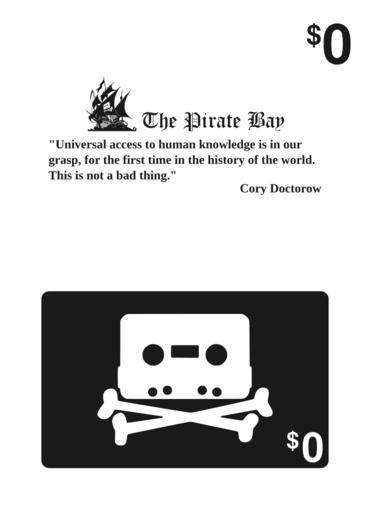 Keywords: Pirate bay gift card.svg en Pirate Bay Gift Card 2012-05-31 own Fiestoforo cc-zero Uploaded with UploadWizard Logos BitTorrent The Pirate Bay Home Taping Is Killing Music