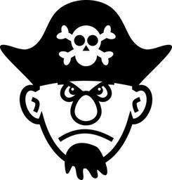 Keywords: pirate skull and crossbones black goatee hat man angry stern