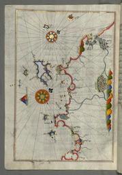 | Keywords: Piri Reis - Map of the Western Italian Coast as Far as the City of Pisa - Walters W658244A - Full Page.jpg Piri Reis - Map of the Western Italian Coast as Far as the City of Rome - Walters W658240B - Full Page jpg Piri Reis - Leaf from Book on Navigation - Walters W658245A - Full Page jpg rtl This folio from Walters manuscript W 658 contains a map of the western Italian coast as far as the city of Pisa Pize late 11th century AH/AD 17th century-early 12th century AH/AD 18th century Ottoman ink and pigments on laid European paper cm 34 24 accession number W 658 244A 79847 Ahmad Afandi date and mode of acquisition unknown see folio 4a Ali Afandi date and mode of acquisiton unknown see folio 4a Sayyid Ali Qapudan date and mode of acquisition unknown see folio 1a Sultan Mahmud Khan date and mode of acquistion unknown waqf seal and followed by a bequest statement now erased and the seal of the inspector of wakfs Mustafá Tahir see folio 4a Henry Walters Baltimore date and mode of acquisition unknown Walters Art Museum Henry Walters Acquired by Henry Walters place of origin Turkey Walters Art Museum license 2D Piri Reis Kitab-ı Bahriye Walters MS 658 244A Old maps of Tuscany Old maps of Pisa Old maps of Livorno Piombino in art Old maps of Elba Maps of Isola del Giglio Giannutri island Orbetello Monte Argentario Old maps of Lazio Civitavecchia Old maps of Florence |