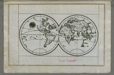 | Keywords: Piri Reis - World Map in a Double Hemisphere - Google Art Project.jpg LargeImage ink and pigments on laid European paper Ahmad Afandi date and mode of acquisition unknown see folio 4a; Ali Afandi date and mode of acquisiton unknown see folio 4a; Sayyid Ali Qapudan date and mode of acquisition unknown see folio 1a; Sultan Mahmud Khan date and mode of acquistion unknown waqf seal and followed by a bequest statement now erased and the seal of the inspector of wakfs Mustafá Tahir see folio 4a; Henry Walters Baltimore date and mode of acquisition unknown; Walters Art Museum 1931 by bequest special url_id OQHqOPdmS55lkA PD-old-100-1923 1555 Maps by Piri Reis Google Art Project works by Piri Reis Old maps of Earth's hemispheres Double hemisphere world maps Maps in Arabic Islamic manuscripts in the Walters Art Museum |