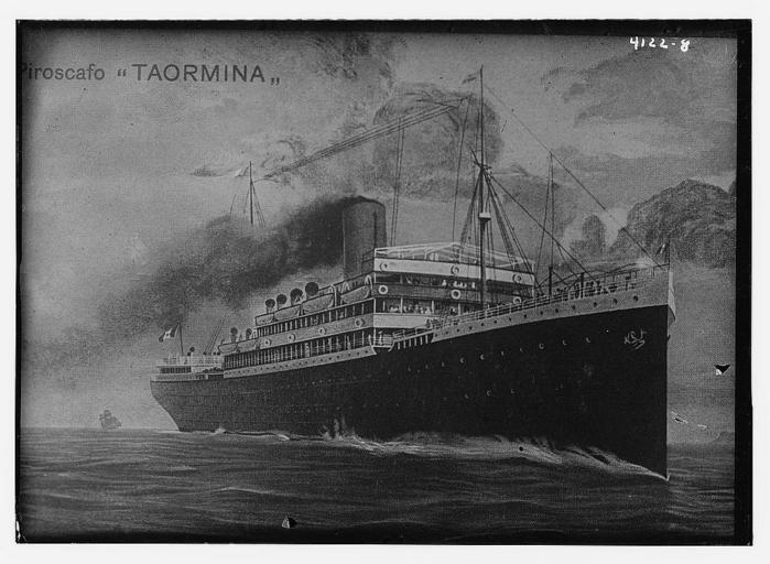 | Keywords: Piroscafo TAORMINA (LOC) (16149365616).jpg Bain News Service publisher Piroscafo TAORMINA between ca 1915 and ca 1920 1 negative glass ; 5 x 7 in or smaller Notes Title from unverified data provided by the Bain News Service on the negatives or caption cards Forms part of George Grantham Bain Collection Library of Congress Format Glass negatives Rights Info No known restrictions on publication Repository Library of Congress Prints and Photographs Division Washington D C 20540 USA http //hdl loc gov/loc pnp/pp print hdl loc gov/loc pnp/pp print General information about the Bain Collection is available at http //hdl loc gov/loc pnp/pp ggbain hdl loc gov/loc pnp/pp ggbain Higher resolution image is available Persistent URL http //hdl loc gov/loc pnp/ggbain 23690 hdl loc gov/loc pnp/ggbain 23690 Call Number LC-B2- 4122-8 https //www flickr com/photos/library_of_congress/16149365616/ Piroscafo TAORMINA LOC LOC-image ggbain 23690 https //www flickr com/people/8623220 N02 The Library of Congress http //www loc gov/rr/print/195_copr html noknown The Library of Congress Flickr Commons PD-Bain The Library of Congress http //flickr com/photos/8623220 N02/16149365616 2015-02-15 03 44 45 pd |