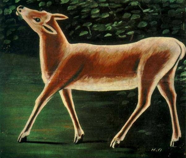 | Keywords: Pirosmani. Doe deer.jpg Artwork LangSwitch A Doe Walking El corzo Олень צבי איי ה Oil painting on cardboard ציור שמן ע קרטון cm 68 82 Tbilisi The State Museum of Fine Arts of Georgia מוזיאון האמנות ש גאורגיה ხელ ვ ების სახელმწიფ მუზეუმი Госуда ственный музей искусств Г узии http //diary-or-notes cocolog-nifty com/blog/files/Slide_Show_b zip diary-or-notes cocolog-nifty com Source of the first version http //www russianavantgard com/Artists/pirosmani/pirosmani_a_doe_walking jpg www russianavantgard com 1900s Creator Niko Pirosmani Other versions Paintings by Niko Pirosmani Oil paintings of animals 1900s paintings Deer in art Georgia in the 1900s Niko Pirosmani at Art Museum of Georgia Source http //diary-or-notes cocolog-nifty com/blog/2009/01/post-e8fb html diary-or-notes cocolog-nifty com Source of the first version http //www russianavantgard com/Artists/pirosmani/pirosmani_a_doe_walking html www russianavantgard com PD-old-auto 1918 |