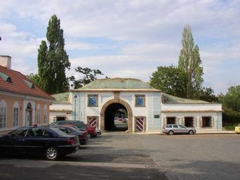 | Keywords: Pisecka brana Prague CZ 044.jpg Písecká brána v Praze Pohled z vnitřní strany Písek Gate at K Brusce Street near Hradčanská metro station in Prague Czech Republic A view from the inner side The gate once a part of 1720s city fortification is one of four preserved Baroque gates in Prague the remaining three are at Vyšehrad The name of the gate derives from medieval suburb of Písek which used to stand next to the Vltava River near today's Malostranská metro station The similarity of the name with the town of Písek in South Bohemia is only a coincidence Písecká brána |