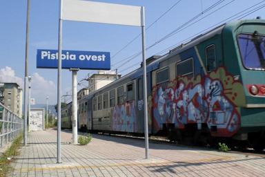 Keywords: Pistoia Ovest FS.JPG it Veduta della stazione di Pistoia ovest FS Da me che sono l'autore Coclea 2008-07-30 Veduta della fermata di Pistoia FS_Ovest Pistoia Ovest train station Graffiti on rolling stock of Italy