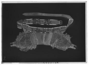 | Keywords: Pistolhölster par m 20381 - Livrustkammaren - 709-negative.tif LSH artwork sv Hölster dubbla och genom brunt läder sammanfogade med varandra Hölstren är av brunt läder och skodda med tännlikor av mässing På hölstren är ett vävt band med läderremmar påsytt sadelgjord Hölsterkapporna är av av nött sammet med linnefoder På sammeten ett band av guldfärgad metalltråd och lan samt snodd frans och krepinfrans Kappornas insida är av brunt läder original caption metal - velvet - woolen - brass - leather Färg brunt material läder size mm 820 utvikt LRK place of origin original filename LN_B04210_007090 56948 inventory number LRK 20380 709 CC0 Pistolhölster par m 20381 - Livrustkammaren - 709 tif |