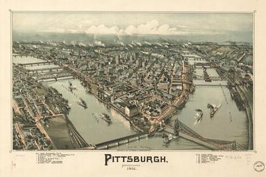 | Keywords: Pittsburgh, Pennsylvania, 1902 WDL9575.png Artwork ru Фауле Т Таддеус о тиме 1842-1922 гг fr Fowler T M Thaddeus Mortimer 1842-1922 en Fowler T M Thaddeus Mortimer 1842-1922 zh 赛迪斯·莫蒂默·福勒,1842-1922 年 pt Fowler T M Thaddeus Mortimer 1842-1922 ar فاولر، ت م ثاديوس مورتيمر ، 1842-1922 es Fowler T M Thaddeus Mortimer 1842-1922 ru Питтсбу г штат Пенсильвания 1902 г fr Pittsburgh en Pennsylvanie 1902 en Pittsburgh Pennsylvania 1902 zh 宾夕法尼亚州匹兹堡市,1902 年 pt Pittsburgh Pensilvânia 1902 ar بيتسبرغ، بنسلفانيا، 1902 ru а этой пано амной ка те показан Питтсбу г штат Пенсильвания в том виде какой он имел в 1902 г В нуме ованном пе ечне обозначений в нижней части ка ты указаны п едставляющие инте ес места в том числе к упные железнодо ожные станции почта блокгауз фо та Питт здание суда а также здания Ф ик Ка неги и Па к Благода я поднятой точке обзо а ка та показывает ост го ода вдоль набе ежных ек ононгахела и Аллегейни кото ые в Питтсбу ге сливаются и об азуют еку Огайо Пано амная ка та являлась ка тог афической фо мой кото ую ши око использовали для изоб ажения аме иканских и канадских к упных и мелких го одов в конце XIX и в начале XX века Также называемые видами с высоты птичьего полета или пе спективными ка тами эти аботы п едставляют изоб ажения го одов как будто п и осмот е све ху под ост ым углом Обычно не выче чиваемые в масштабе они показывают асположение улиц отдельные здания и главные особенности пейзажа в пе спективе Эта ка та является аботой Таддеуса о тиме а Фауле а 1842 1922 гг одного из наиболее известных составителей пано амных ка т Фауле одился в Лоуэлле штат ассачусетс с ажался и был анен в Аме иканской Г ажданской войне По аботав на своего дядю кото ый был фотог афом он основал собственную фи му по выпуску пано амных ка т в 1870 г В течение своей п одолжительной ка ье ы Фауле создал пано амные ка ты го одов асположенных в 21 штате и на те ито иях Канады <br>Аэ офотоснимки; Река Аллегейни штаты Пенсильвания и ью-Йо к ; Го ода и поселки; Река ононгахела штаты Западная Ви джиния и Пенсильвания ; Река Огайо; Пано амные виды; Регион Питтсбу г штат Пенсильвания fr Cette carte panoramique de Pittsburgh en Pennsylvanie montre la ville telle qu'elle était en 1902 L'index numéroté en bas indique les points d'intérêt notamment les principales gares ferroviaires la poste le blockhaus du fort Pitt le palais de justice et les gratte-ciel Frick Carnegie et Park De son point de vue élevé la carte représente la croissance de la ville au bord des rivières Monongahéla et Allegheny qui se rejoignent à Pittsburgh pour former la rivière Ohio La carte panoramique était un type de carte communément utilisé pour représenter des villes américaines et canadiennes vers la fin du XIX<sup>e</sup> et le début du XX<sup>e</sup> siècle Également connues sous le nom de vues aériennes ou cartes de vue en perspective ces œuvres représentent les villes vues d'en haut et en oblique Pas toujours dessinées à l'échelle les cartes révèlent le tracé des rues les bâtiments individuels ainsi que les caractéristiques essentielles du paysage en perspective Cette carte est de Thaddeus Mortimer Fowler 1842-1922 l'un des concepteurs de cartes panoramiques les plus prolifiques Fowler est né à Lowell au Massachusetts et combattit et fut blessé durant la guerre de Sécession Après avoir travaillé pour un oncle qui était photographe il fonda sa propre société de cartes panoramiques Durant sa longue carrière Fowler réalisa les cartes panoramiques de villes dans 21 États et régions du Canada <br>Vues aériennes; Rivière Allegheny Pennsylvanie et New York ; Petites et grandes villes; Rivière Monongahéla Virginie-Occidentale et Pennsylvanie ; Rivière Ohio; Vues panoramiques; Région de Pittsburgh Pennsylvanie en This panoramic map shows Pittsburgh Pennsylvania as it appeared in 1902 The numbered index at the bottom indicates points of interest including major railroad stations the post office Fort Pitt blockhouse the courthouse and the Frick Carnegie and Park buildings With its elevated view the map shows the growth of the city along the banks of Monongahela and Allegheny Rivers which meet at Pittsburgh to form the Ohio River The panoramic map was a cartographic form popularly used to depict U S and Canadian cities and towns in the late 19th and early 20th centuries Also known as bird's-eye views or perspective maps these works are representations of cities portrayed as if viewed from above at an oblique angle Not generally drawn to scale they show street patterns individual buildings and major landscape features in perspective 