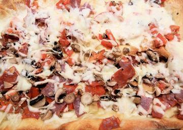 Keywords: pizza mushrooms salami anchovies tomatoes cheese
