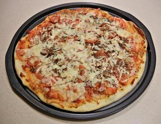 Keywords: pizza pepperoni tomato cheese bacon mushroom