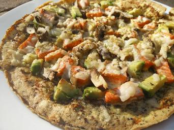 Keywords: pizza salmon avocado super food dairy free gluten free paleo food meal italian cheese delicious tasty pesto