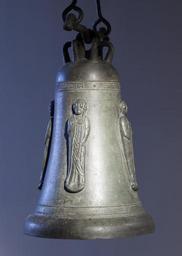 | Keywords: PK - Bell with Saints Peter, Paul, John, and Thomas - Walters 5479 - View B.jpg Bells were used to call the faithful to services throughout the Middle Ages They also marked deaths and were even believed to ward off storms and other dangers Although many churches had bells few medieval examples survive because they were often recast when they were damaged or melted down so that the metal could be reused We do not have much information about the origin of this bell but its long narrow shape resembles several bells known to have been made in the mid-fifteenth century in Austria The bell has four figures in relief Saints Peter Paul John the Evangelist and Thomas The apostles are identified by their attributes Peter holds the keys to heaven; Paul is shown with the sword of his execution; John the Evangelist holds his sacred writings; and Thomas holds a ruler alluding to his role as patron of architects The founder who made the bell has signed his work with the inscription P K ME FECIT PK made me and the bell is further inscribed with the words XPS VINCIT XPS REGNAT XPS IMPERAT Christ conquers Christ reigns Christ rules 2nd half Other date century 14 Medieval bronze cm 84 4 55 7 accession number 54 79 40263 Jules Domergue Paris Arnold Seligmann Paris Henry Walters city Baltimore Walters Art Museum Henry Walters Acquired by Henry Walters 1922 Signature Cast inscription on upper band +P K MEFECIT; Translation P K made me Transcription Cast on upper band +XPS VINCIT XPS REGNAT XPS IMPERAT; Translation Christ conquers Christ reigns Christ rules place of origin Austria Walters Art Museum license Medieval metalwork in the Walters Art Museum Media from the Walters Art Museum no creator template Media contributed by the Walters Art Museum needs category review |