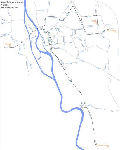 Keywords: PL Opole MZK noc.png en The map of Opole's night public transport bus lines pl Nocne linie autobusowe w Opolu own Kaww 2011-08-29 Cc-zero Public transport maps of Opole