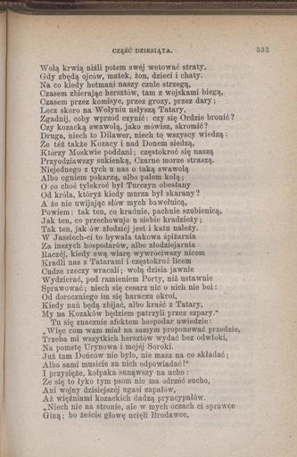 Keywords: PL Wacław Potocki-Wojna chocimska 335.jpeg epic poem poemat http //polona pl/dlibra/doccontent2 id 7493 Cyfrowa Biblioteka Narodowa Creator Wacław Potocki Wojna chocimska Poemat w 10 częściach Series title Biblioteka najcelniejszych utworów literatury europejskiéj S Lewental S Lewental 1880 Warszawa pl PD-old Wojna chocimska Potocki |
