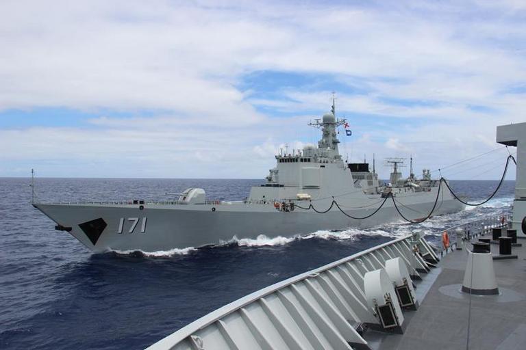 Keywords: PLA(N) Qian Daohu and Haikou conducting RAS during RIMPAC 2014.jpg en PLA N Qian Daohu and Haikou conducting RAS during RIMPAC 2014 zh 环太平洋-2014 军事演习中 千岛湖 号综合补给舰对 海口 号导弹驱 舰进行海上补给 https //www facebook com/shares/view id 803669226324242 PLA N Naval Officer Wang Zihao 2014-07-12 PLANS Haikou DDG-171 PD-USGov |