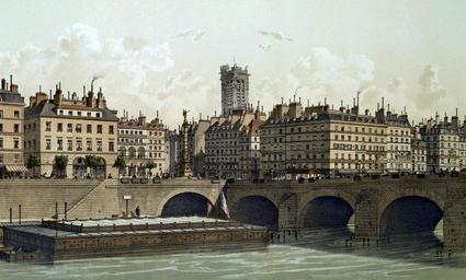 | Keywords: Place du Châtelet et Pont au Change, 1830.jpg Artwork The Place du Châtelet takes its name from the ancient fortress Le Grand Châtelet that was constructed to guard the Pont au Change It was destroyed by Napoléon I Napleon III however gave it its present form In the center of the Place stands a fountain A column built in 1808 is a monument to the victories of Napoléon I 1875-1882 lithograph 24 x 30 cm Institution Brown University Library object history exhibition history credit line Published in Theodor Josef Hubert Hoffbauer Paris à travers les âges Paris Firmin-Didot et cie 1885 accession number 1145901303675362 PD-old Lithographs of Paris Images of Paris from the Brown University Library Paris à travers les âges Place du Châtelet Paris Historical images of Pont au Change Fontaine du Palmier Historical images of Tour Saint-Jacques 1830 Quai de la Mégisserie Paris 1830 in Paris |