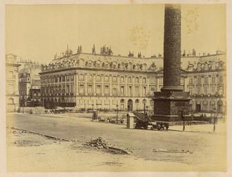 | Keywords: Place Vendôme and the Barricade in the Rue de la Paix WDL1270.png Artwork ru Б аквейе Б уно 1823 1875 гг fr Braquehais Bruno 1823-1875 en Braquehais Bruno 1823-1875 zh 布鲁诺·布拉奇海 ,1823-1875 年 pt Braquehais Bruno 1823-1875 ar براكهيه برونو، 1823-1875 es Braquehais Bruno 1823-1875 ru Вандомская площадь и ба икада на Рю де ла Пэ fr Place Vendôme et barricade de la rue de la Paix en Place Vendôme and the Barricade in the Rue de la Paix zh 旺多姆广 及和平街的防御工事 pt Praça Vendôme e a barricada em Rue de la Paix ar ميدان فندوم ومتراس شارع لابيه ru П ичиной ф анко-п усской войны стал ост нап яженности в отношениях между Ф анцией и П уссией в 1860-х гг Ф анция п и импе ато е аполеоне III была полна ешимости п ове ить астущую силу П уссии и отомстить за то что она ассмат ивала как яд дипломатических унижений П уссия п и канцле е Отто фон Бисма ке считала что война ге манских госуда ств п отив Ф анции под уководством П уссии станет ешающим шагом к созданию единой Ге манской импе ии Конфликт начался 19 июля 1870 г когда Ф анция объявила войну Ф анцузская а мия оказалась ужасно неподготовленной и поте пела сок ушительное по ажение в битве п и Седане отк ыв до огу на Па иж К 19 сентяб я немцкие войска полностью ок ужили го од и начали осаду кото ая п одлилась более четы ех месяцев От езанные от поставок п одовольствия из сельской местности па ижане пытались выжить питаясь собаками кошками и даже животными из па ижского зоопа ка Де евья на Елисейских полях и в па ках были вы ублены и использованы в качестве топлива 5 янва я немецкие войска начали бомба ди овку го ода кото ая п одолжалась по несколько часов каждую ночь в течение 23 суток а ок естности Па ижа было сб ошено около 12 000 сна ядов кото ые убили около 400 человек Па иж сдался 28 янва я в сущности положив конец войне За по ажением ф анцузов последовало на одное восстание и установление в а те 1871г Па ижской коммуны еволюционного п авительства сфо ми ованного в соответствии с ана хистскими и социалистическими п инципами Коммуна была жестоко подавлена в мае 1871 г ф анцузскими войсками п авительства Адольфа Тье а Во в емя неп одолжительного конт оля над Па ижем коммуна ы аз ушали импе ато скую колонну на Вандомской площади Подавление коммуны п ивело к дальнейшим значительным аз ушениям в го оде когда коммуна ы подожгли дво ец Тюиль и Лув и д угие здания К оме того многие здания пост адали или были аз ушены во в емя отчаянной пе ест елки между коммуна ами и конт еволюционными силами Siege de Paris 1870 1871 Осада Па ижа 1870 1871 гг п едставляет собой альбом из 110 фотог афий сделанных Огюстом Б уно Б аквейе 1823 1875 гг ф анцузским фотог афом и п ог ессивным фотожу налистом документи овавшим осаду и последствия бомба ди овок а также аз ушения п оизошедшие во в емя Па ижской коммуны <br>Ба икады; Вандомская колонна Па иж Ф анция ; Колонны; Ф анко-п усская война 1870 1871 гг ; Память ми а; Памятники и мемо иалы; Вандомская площадь Па иж Ф анция ; Площади; Рю де ла Пэ Па иж Ф анция ; Уще б нанесенный войной fr La guerre franco-allemande fut provoquée par l escalade des tensions entre la France et la Prusse dans les années 1860 La France sous l empereur Napoléon III était déterminée à contenir la croissance de la puissance prussienne et à venger ce qui était considéré comme une série d humiliations diplomatiques La Prusse sous le chancelier Otto von Bismarck considérait qu une guerre dirigée par la Prusse et menée par les États allemands contre la France serait un acte décisif menant à la création d un empire allemand unifié Le conflit débuta le 19 juillet 1870 jour où la France déclara la guerre L armée française s avéra terriblement mal préparée et subit une défaite désastreuse lors de la bataille de Sedan laissant la voie libre vers Paris Le 19 septembre les Allemands encerclèrent complètement la ville et commencèrent un siège qui allait durer plus de quatre mois Coupés du ravitaillement provenant de la campagne les Paris