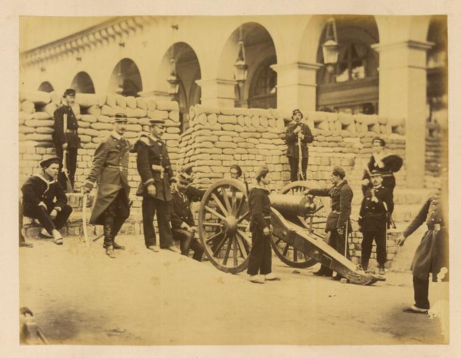 | Keywords: Place Vendôme; the Right Side of the Barricade in the Rue Castiglione WDL1289.png Artwork ru Б аквейе Б уно 1823 1875 гг fr Braquehais Bruno 1823-1875 en Braquehais Bruno 1823-1875 zh 布鲁诺·布拉奇海 ,1823-1875 年 pt Braquehais Bruno 1823-1875 ar براكهيه برونو، 1823-1875 es Braquehais Bruno 1823-1875 ru Вандомская площадь; п авая сто она ба икады на улице Кастильоне fr Place Vendôme partie droite de la barricade de la rue de Castiglione en Place Vendôme; the Right Side of the Barricade in the Rue Castiglione zh 旺多姆广 ;卡斯堤拉恩街的防御工事右侧 pt Praça Vendôme; lado direito da barricada em Rue Castiglione ar ميدان فندوم؛ الجانب الأيمن من المتراس الموجود في شارع كاستيليون ru П ичиной ф анко-п усской войны стал ост нап яженности в отношениях между Ф анцией и П уссией в 1860-х гг Ф анция п и импе ато е аполеоне III была полна ешимости п ове ить астущую силу П уссии и отомстить за то что она ассмат ивала как яд дипломатических унижений П уссия п и канцле е Отто фон Бисма ке считала что война ге манских госуда ств п отив Ф анции под уководством П уссии станет ешающим шагом к созданию единой Ге манской импе ии Конфликт начался 19 июля 1870 г когда Ф анция объявила войну Ф анцузская а мия оказалась ужасно неподготовленной и поте пела сок ушительное по ажение в битве п и Седане отк ыв до огу на Па иж К 19 сентяб я немцкие войска полностью ок ужили го од и начали осаду кото ая п одлилась более четы ех месяцев От езанные от поставок п одовольствия из сельской местности па ижане пытались выжить питаясь собаками кошками и даже животными из па ижского зоопа ка Де евья на Елисейских полях и в па ках были вы ублены и использованы в качестве топлива 5 янва я немецкие войска начали бомба ди овку го ода кото ая п одолжалась по несколько часов каждую ночь в течение 23 суток а ок естности Па ижа было сб ошено около 12 000 сна ядов кото ые убили около 400 человек Па иж сдался 28 янва я в сущности положив конец войне За по ажением ф анцузов последовало на одное восстание и установление в а те 1871г Па ижской коммуны еволюционного п авительства сфо ми ованного в соответствии с ана хистскими и социалистическими п инципами Коммуна была жестоко подавлена в мае 1871 г ф анцузскими войсками п авительства Адольфа Тье а Во в емя неп одолжительного конт оля над Па ижем коммуна ы аз ушали импе ато скую колонну на Вандомской площади Подавление коммуны п ивело к дальнейшим значительным аз ушениям в го оде когда коммуна ы подожгли дво ец Тюиль и Лув и д угие здания К оме того многие здания пост адали или были аз ушены во в емя отчаянной пе ест елки между коммуна ами и конт еволюционными силами Siege de Paris 1870 1871 Осада Па ижа 1870 1871 гг п едставляет собой альбом из 110 фотог афий сделанных Огюстом Б уно Б аквейе 1823 1875 гг ф анцузским фотог афом и п ог ессивным фотожу налистом документи овавшим осаду и последствия бомба ди овок а также аз ушения п оизошедшие во в емя Па ижской коммуны <br>Ба икады; Пушки; Ф анко-п усская война 1870 1871 гг ; Память ми а; Вандомская площадь Па иж Ф анция ; Улица Кастильоне Па иж Ф анция ; Солдаты fr La guerre franco-allemande fut provoquée par l escalade des tensions entre la France et la Prusse dans les années 1860 La France sous l empereur Napoléon III était déterminée à contenir la croissance de la puissance prussienne et à venger ce qui était considéré comme une série d humiliations diplomatiques La Prusse sous le chancelier Otto von Bismarck considérait qu une guerre dirigée par la Prusse et menée par les États allemands contre la France serait un acte décisif menant à la création d un empire allemand unifié Le conflit débuta le 19 juillet 1870 jour où la France déclara la guerre L armée française s avéra terriblement mal préparée et subit une défaite désastreuse lors de la bataille de Sedan laissant la voie libre vers Paris Le 19 septembre les Allemands encerclèrent complètement la ville et commencèrent un siège qui allait durer plus de quatre mois Coupés du ravitaille