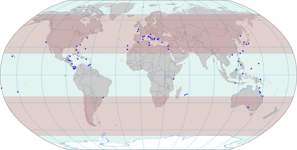 | Keywords: Placozoa.svg en Distribution of Placozoa Kingdom Animalia Phylum Placozoa based on Eitel 2013 doi 10 1371/journal pone 0057131 2013-04-01 World map with the torrid zone highlighted Derived via Inkscape from Image World map pol 2005 v02 svg which is itself public domain CIA World Factbook other versions PD-USGov Placozoa Parazoa |