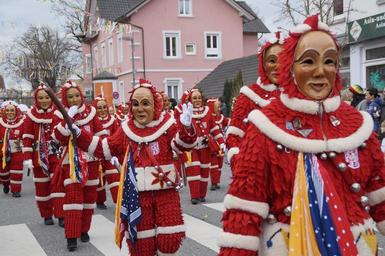 Keywords: plaetzler plaetzlerzunft vineyard historically red white fig fool haestraeger carnival fools jump panel haes fasnet move costume swabian alemannic masquerade customs strassenfasnet carved wooden mask tradition custom mask fools guild guild group carnival parade larva germany baden württemberg face dressed up portrait human person