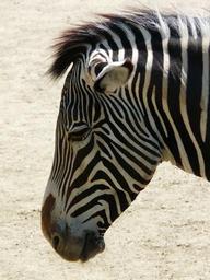 Keywords: plains zebra zebra perissodactyla animal africa steppe striped black white black and white head profile ears eyes nose mouth tired
