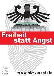 | Keywords: Plakat demo 31052008 3.jpg Aufruf zur Demonstration am 31 05 2008 des Arbeitskreises Vorratsdatenspeicherung Plakat https //wiki vorratsdatenspeicherung de/Bild Plakat_demo_31052008_3 jpg 2008-05-20 Benutzer Dog des wiki vorratsdatenspeicherung de ---Frei verwendbar für jeden --- - Uwe dog Uwe dog from https //wiki vorratsdatenspeicherung de Arbeitskreis Vorratsdatenspeicherung Freedom not Fear 2008 | ||||