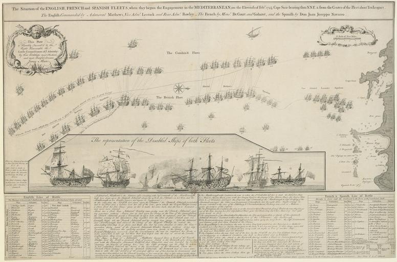 | Keywords: Plan descriptif de la bataille de Toulon 1744.jpg of the most damaged vessels fr Gravure anglaise présentant la bataille devant Toulon en 1744 avec un résumé de l'action et l'état des vaisseaux les plus abimés es Inglés grabado que representa la batalla de Tolón en 1744 con un resumen de la acción y una descripción de los barcos más dañados 1744 ark /12148/btv1b6944935h James Main http //commons wikimedia org/wiki/File Bataille_de_Toulon_1744_vaisseaux_des_deux_flottes_abimes jpg PD-old-100 Battle of Toulon 1744 |