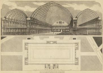 | Keywords: Plan et coupe du palais de l'Exposition universelle, aux Champs-Elysées.jpg This engraving represents a plan and an elevation of the Palais de l'industrie built for the Great exhibit of 1855 Its façade was made out of thick stone walls reinforced by iron structures Inside the architects used mainly iron for the columns and for the roof The immense central hall was about 200 meters long and 50 meters wide 655 x 165 feet 1854-11-11 engraving 22 5 x 32 6 cm Institution Brown University Library object history exhibition history credit line Paris Illustration accession number 1223581467578125 <gallery>File Max Berthelin - Universal Exhibition 1855 Palace of Industry cross-section - Google Art Project jpg </gallery> PD-100 Engravings of Paris Images of Paris from the Brown University Library Interior of Palais de l'Industrie 1854 Architectural perspective drawings of Paris 1854 in Paris 1854 engravings L'Illustration 1854 Floor plans of Paris |