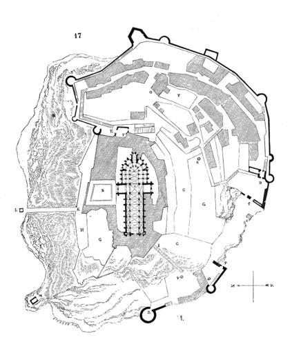 Keywords: Plan.mont.Saint.Michel.png Plan du Mont Saint Michel Issu du Dictionnaire raisonné de l'architecture française du XIe au XVIe siècle par Eugène Viollet-Le-Duc 1856 /Abbey Medieval architecture Plans of Mont Saint-Michel Abbey