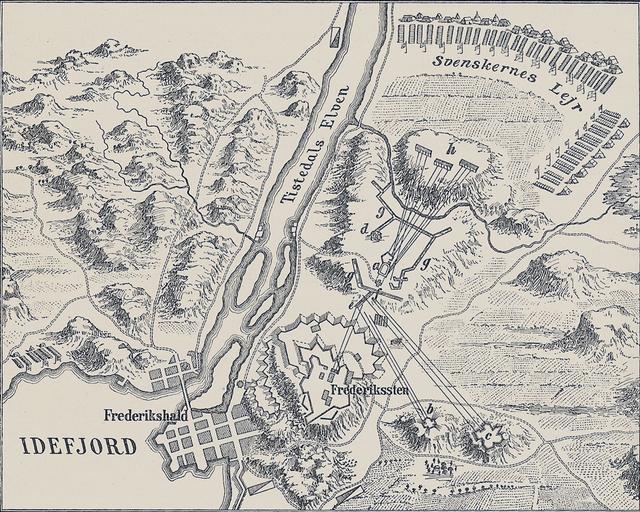 | Keywords: Plan of the Siege of Frederiksten 1718.jpg en Plan of the Siege of Frederiksten 1718 Key to the letters a The Fort Gyldenløve b The Great Tower c Overbjerget d The hut of Karl XII e The place where Karl XII was shot f g Swedish trenches h Swedish artillery positions Scan from Danmarks Riges Historie volume 5 by Edvard Holm Saddhiyama 1907 Expired copyright PD-Art Great Northern War | ||||