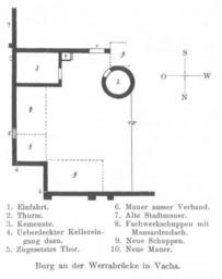 | Keywords: Plan Vacha Wendelstein.jpg en A map of Wendelstein castle in Vacha de Ein Plan der Burg Wendelstein in Vacha Voss Georg Hrsg Großherzogthum Sachsen-Weimar-Eisenach Amtsgerichtsbezirk Vacha In Lehfeldt Paul/Voss Georg Hrsg Bau- und Kunst-Denkmäler Thüringens Heft XXXVII Jena 1911 S 35 G Kühn 1911 PD-old Burg Wendelstein City walls of Vacha Plans of castles in Thuringia |