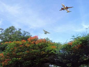 Keywords: plane aviation taking off bird dove trees park flowers sky clouds fly airport trip vegetation