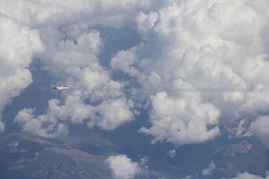 Keywords: plane clouds mountains holiday