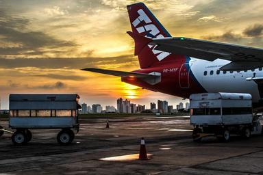 Keywords: plane sunset airport sky horizon line clouds