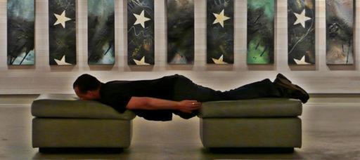 | Keywords: Planking at an art gallery opening 2.jpg en Man planking across square seat-cushions at an art gallery opening Image illustrates fad and internet-meme of PLANKING laying still and face-down on surfaces in the manner of a wooden plank --even across gaps like the space between the cushion-seats - - - Copyright-free image notes Image released to Public Domain by creator Gallery opening was a public event with news media access; presumption of privacy therefore moot re person pictured and for copyright of art visible in background Partial view of art at public event; no copyright violations of Fair Use Man's face not shown and person not identifiable so no model release paperwork required Distribute freely without photographer-attribution 2011-08-10 own Cramyourspam cc-zero Uploaded with UploadWizard Prone Planking Art galleries |