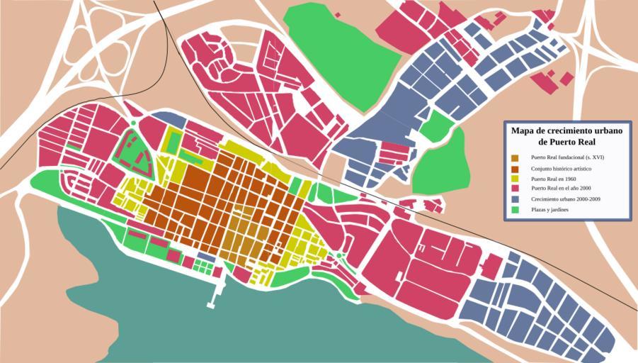 | Keywords: Plano puerto real.svg es Plano de crecimiento urbano de Puerto Real Elaboración propia a partir de datos del Google Earth año 2002-año 2009 el Instituto Cartográfico de Andalucía el Plan General de Ordenación Urbana de Puerto Real descargable en la página del Ayto de Puerto Real NACLE2 2009-09-20 Puerto Real Andalusia in the 2000s |