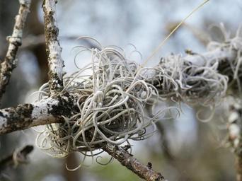Keywords: plant bromeliad nature tropics flora tropical caribbean curacao epiphytic tillandsia close macro grey datailaufnahme road jungle forest grove branches devoured exotic structure sans serif gnarled overgrown entwined