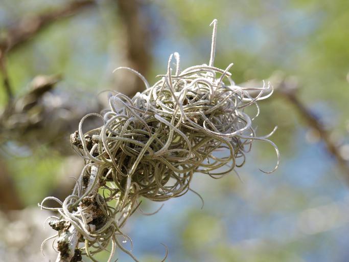 Keywords: plant bromeliad nature tropics flora tropical caribbean curacao epiphytic tillandsia close macro grey datailaufnahme road jungle forest grove branches devoured exotic