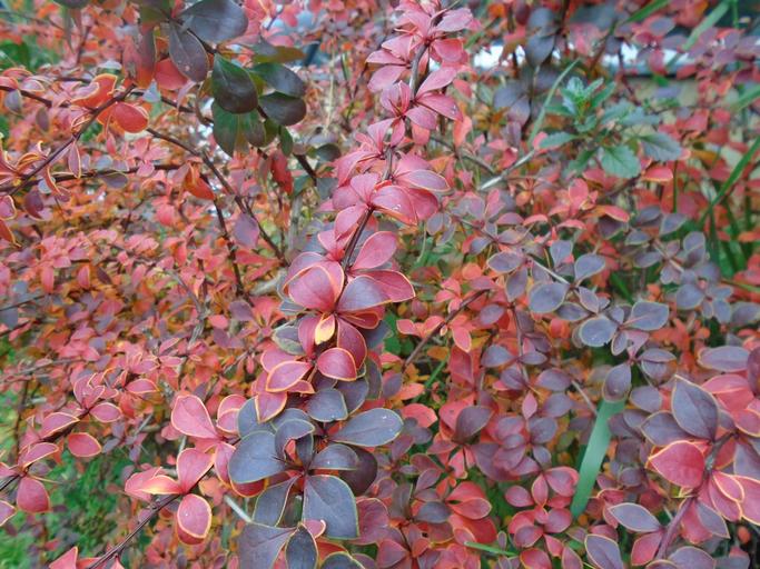 Keywords: plant bush nature garden autumn red foliage burgundy branch green burgundy leaf red leaf green leaf spike spiked pungent