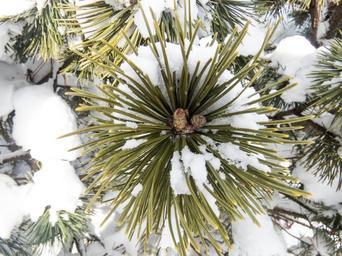 Keywords: plant pine tree needles macro closeup snow covered winter nature evergreen pine leaves