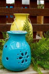 Keywords: planters container flower pot pots ceramic garden vase greenery blue yellow decorative plant