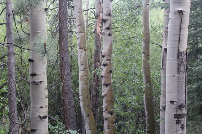 Keywords: plants trees trunks birch forest nature environment white bark wood coniferes pines growth life flora