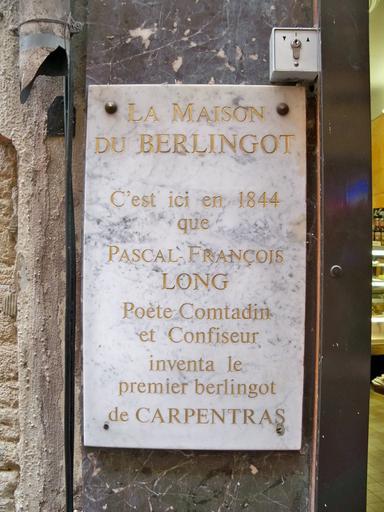 Keywords: Plaque Berlingot.JPG fr plaque pour la 1er fabrication à Carpentras Vaucluse en 1844 own Véronique PAGNIER 2010-08-19 Berlingot Taken with Kodak EasyShare Z950
