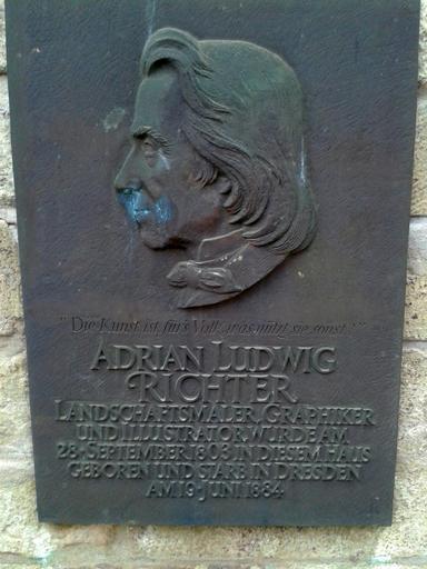 Keywords: Plaque A L Richter.jpg en memorial plate Adrian Ludwig Richter in Friedrichstrasse 42/44 Dresden de Gedenktafel Adrian Ludwig Richter Friedrichstraße 42/44 in Dresden own Thomas8122 2013-08-25 Ludwig Richter Cc-zero