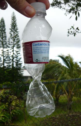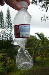 | Keywords: Plastic bottle at 1000 feet, sealed at 14000 feet.png en Plastic bottle sealed at 14 000 feet on Mauna Kea observatory on the island of Hawaii taken down to 1000 feet where the air pressure is crushing the botte own Quantockgoblin 2009-07-02 Air pressure Plastic bottles |
