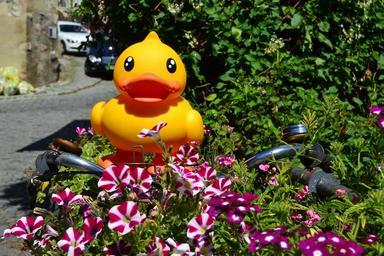 Keywords: plastic toys yellow duck duck flowers bike photo tour green beautiful sun toys