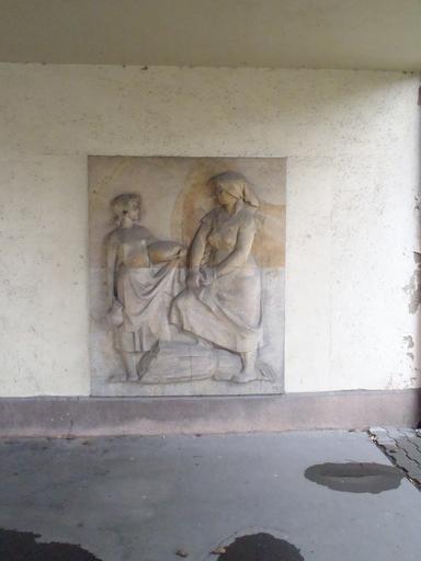 | Keywords: Plastika napravo od vchodu do školy na nám J. Zajíce, Vítkov.jpg en Relief to the right of entrance to school Vítkov J Zajíc square A girl brings a jug and loaf of bread to woman working in the fields cs Reliéf nalevo od vchodu do školy na nám J Zajíce Vítkov Dívka přináší džbán a pecen chleba ženě pracující na poli 2016-08-06 12 11 49 own VladimirSlavik other versions 49 775451 17 751644 cc-zero Náměstí Jana Zajíce | ||||