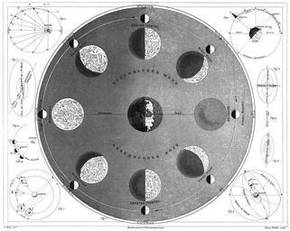 Keywords: Plate 010 Illustrating Phases of the Earth's Moon and Orbits of the Earth and Various Moons John Snape