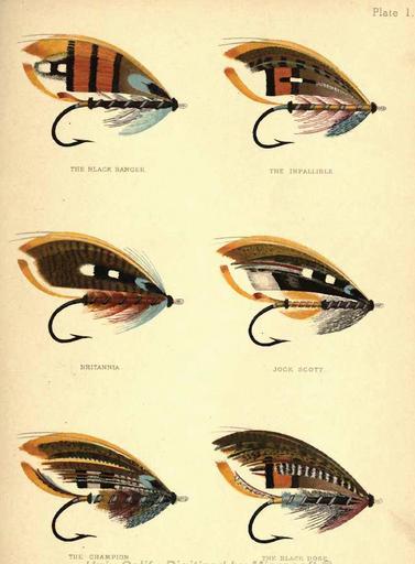 Keywords: PlateI-Kelson.JPG Plate I from George M Kelson's The Salmon Fly 1895 Extracted from PDF public domain version of above work on the Internet Archive 2008-03 Mike Cline PD-old Salmon fly patterns Fly fishing in art