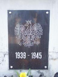 | Keywords: Platforma z herbem na pomniku by Ron.jpg pl Platforma z Herbem Państwowym i datami rozpoczęcia i zakończenia II wojny światowej znajdujący się na pomniku Bohaterom Cześć na Cmentarzu w Sulejowie own Ron whisky 2008-08-21 Monuments and memorials in Sulejów Plaques in Sulejów Coats of arms of Poland |