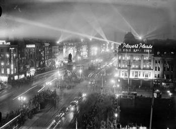 | Keywords: kapp & peterson kapppeterson smoke gallahers medium gallahersmedium neon blue band margarine bluebandmargarine advertising o'connell monument oconnellmonument texaco searchlights g.p.o. gpo o'connell street oconnellstreet o'connell bridge oconnellbridge traffic headlights crowds player's please playersplease hopkins and hopkins hopkinsandhopkins white star line whitestarline pissoir urinal river liffey riverliffey liffey 31st international eucharistic congress 31stinternationaleucharisticcongress eucharistic congress eucharisticcongress saturday 25 june 1932 1930s thirties dublin ireland leinster independent newspapers collection independentnewspaperscollection nelson's pillar nelsonspillar nelson pillar nelsonpillar national library of ireland nationallibraryofireland blackandwhite monochrome skyline black and white Glorious searchlit photo of the heart of Dublin, with the city en fête for the 31st International Eucharistic Congress. Date: (Almost certainly) Saturday, 25 June 1932 NLI Ref.: IND_H_2068 Glorious searchlit photo of the heart of Dublin, with the city en fête for the 31st International Eucharistic Congress. Date: (Almost certainly) Saturday, 25 June 1932 NLI Ref.: IND_H_2068 |