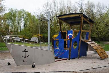 Keywords: playground children's playground ship anchor garden play pirate children explore lake viking